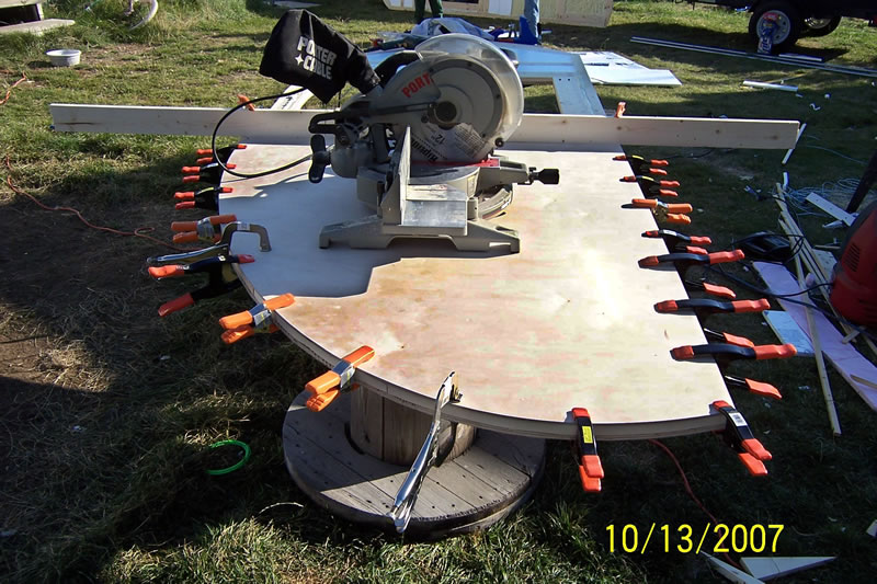 Here's the first piece of 1/4" Baltic Birch being glued on. I had to use the miter saw for weight in the middle.